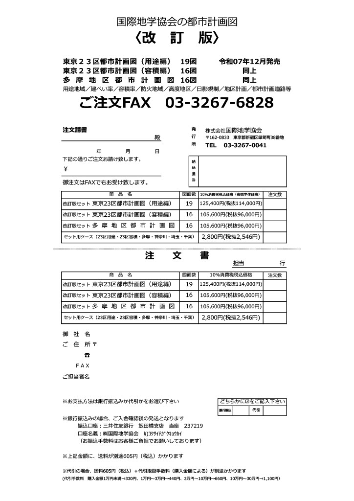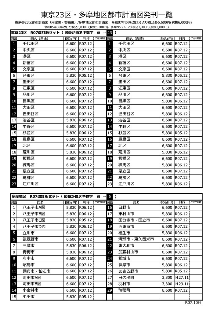 令和7年度東京都都市計画図【改訂版】の発売が12月上旬に決定いたしました。